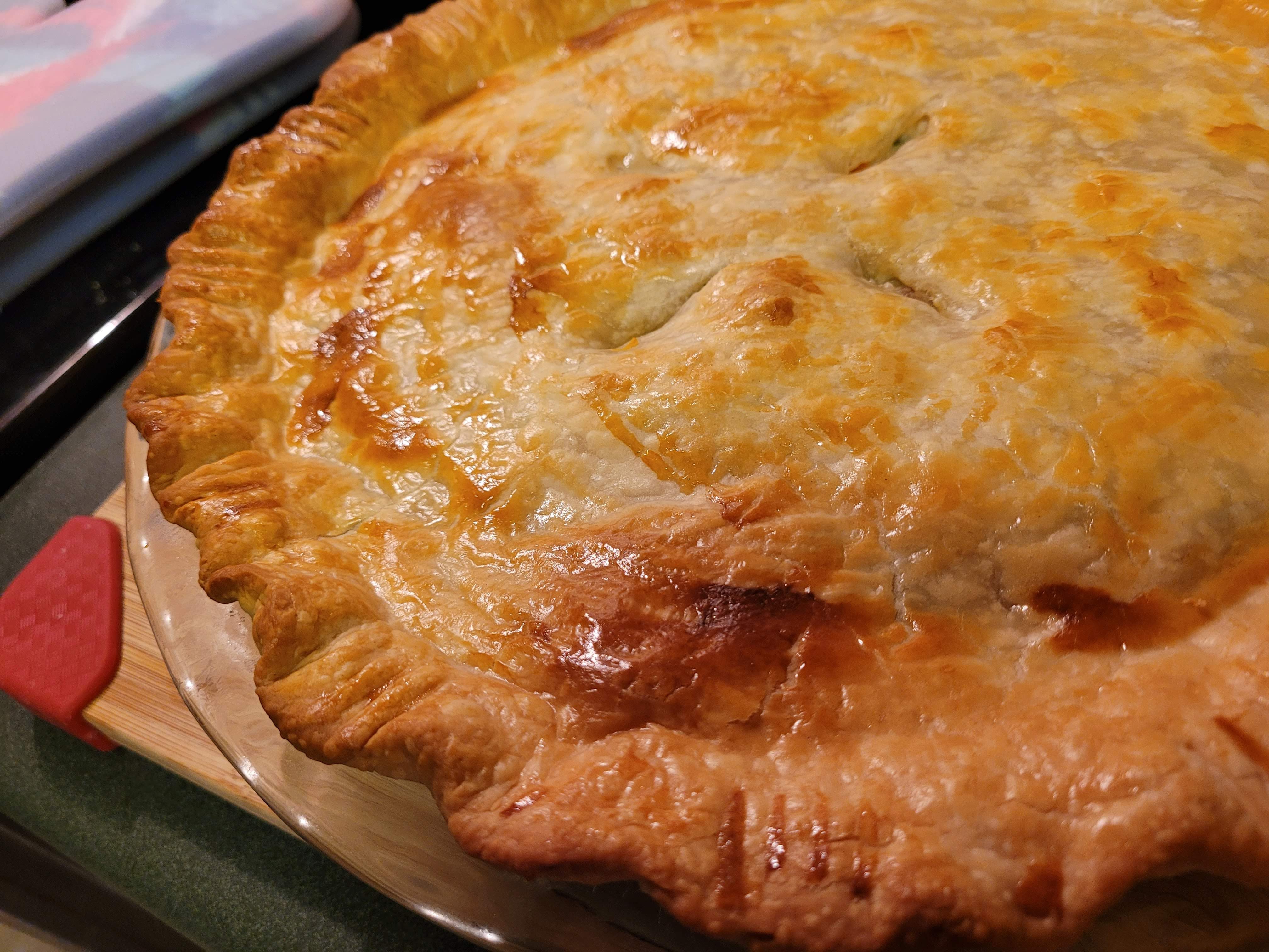 I am not very good at crimping pie crust, so it looks okay. Not beautiful, but simply. Okay. I forgot to take a picture of the filling, but look at that crust. It was perfect for store-bought.