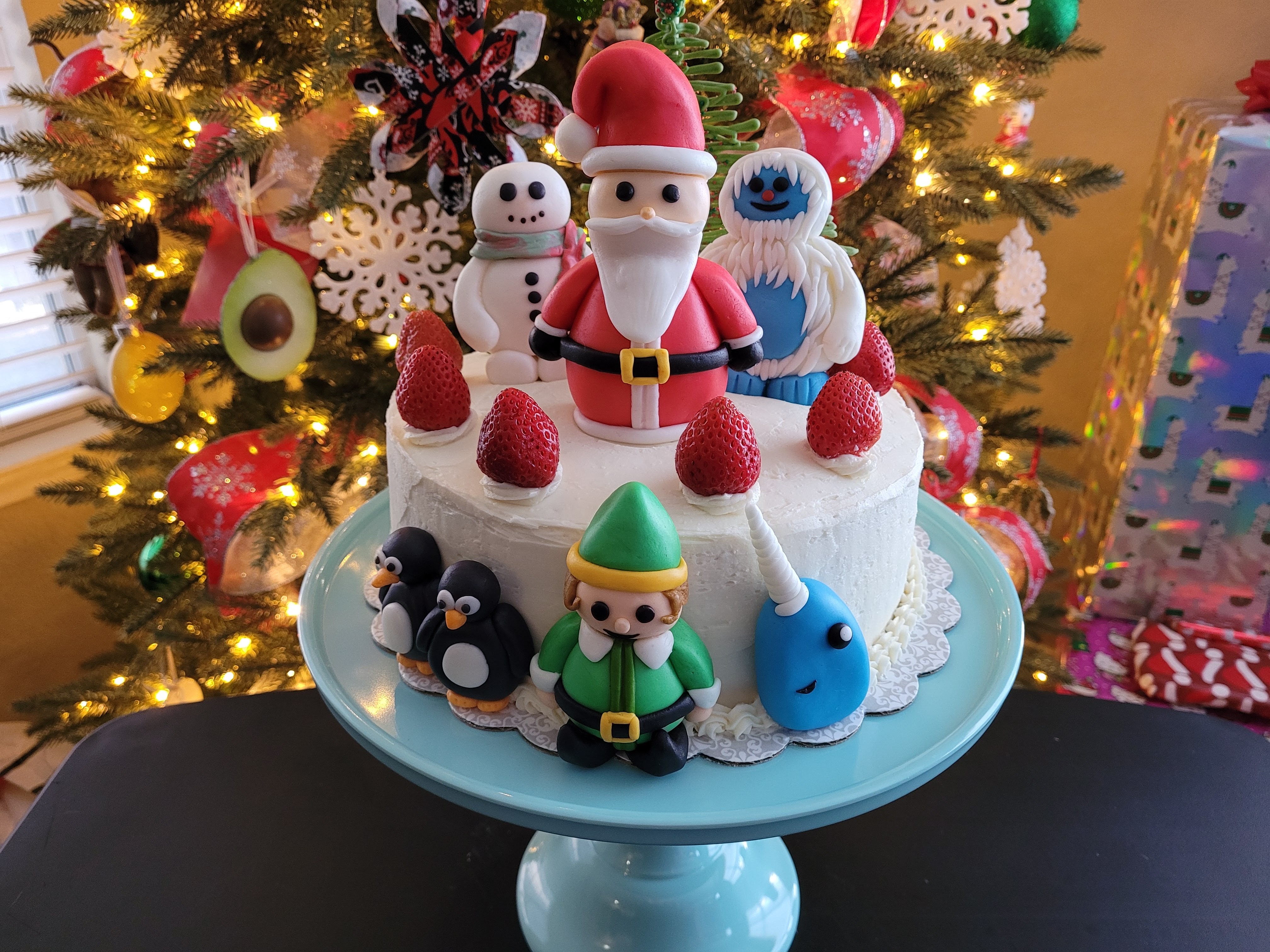 I also used to really love baking, but just like cooking, the passion for doing it died. I decided this year, I wanted to make a Japanese-inspired Christmas cake. Christmas Eve in Japan is actually a lover’s holiday. Traditionally, the Japanese celebrate with a sponge cake, whipped cream icing, and strawberry filling. Decorations are usually very simple dollops of whipped cream, a Santa figurine, and a border of whole strawberries. Their simplicity is what makes them beautiful…but I ended up screwing that up and totally Americanized it. I started having so much making fondant decorations that I didn’t stop and what was supposed to be a simple cake with a Santa topper turned into an nod to the movie Elf. Making this cake brought me so much joy that I’m not even mad at myself for going overboard.