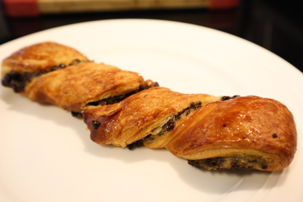 Earlier in the day, we went to H-Mart, which is a Korean supermarket in our area. That’s where we picked up the Japanese mayo (Kewpie). My blood sugar was crashing, so Rugjen let me hit up the small bakery. I had a caramel apple danish in the car while I battled low blood sugar. I also picked up another pastry with chocolate inside. It’s what I ended up having after that delicious dinner.