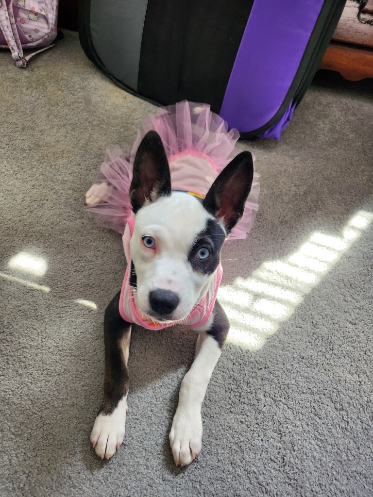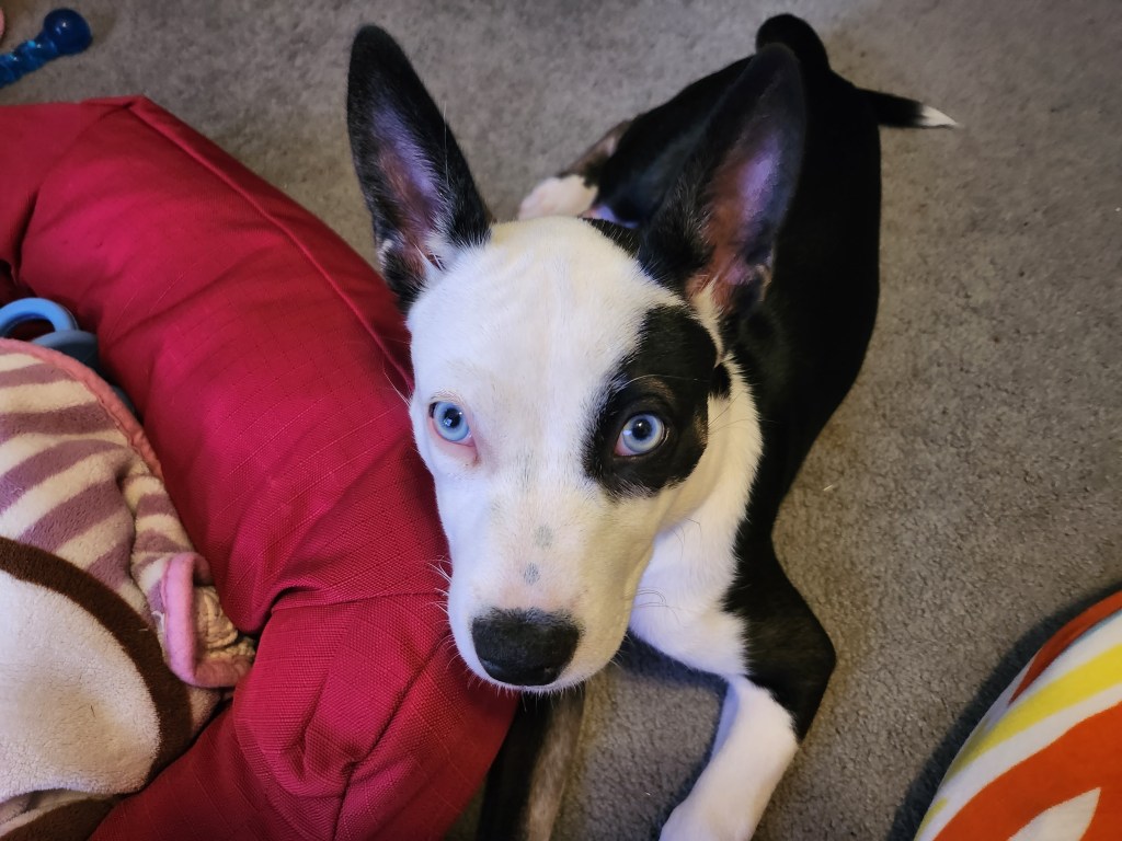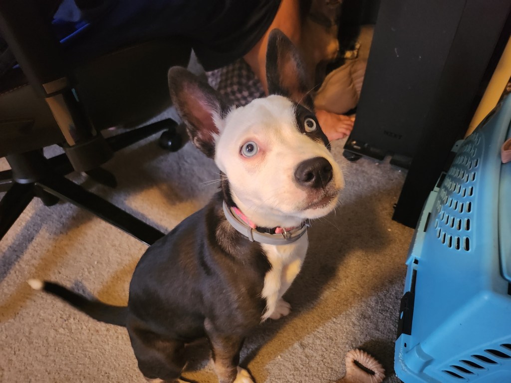 She is a high-energy puppy right now, but also shows periods of calm. Rikka is a super sweet dog and VERY smart. We sent her to puppy boarding school, and we felt that she learned a lot of good habits. She can recognize commands such as sit, place, down, crate, and touch. We are continually working with her to reinforce her commands. She is daddy’s girl and treats me like chopped liver, but that is perfectly okay.