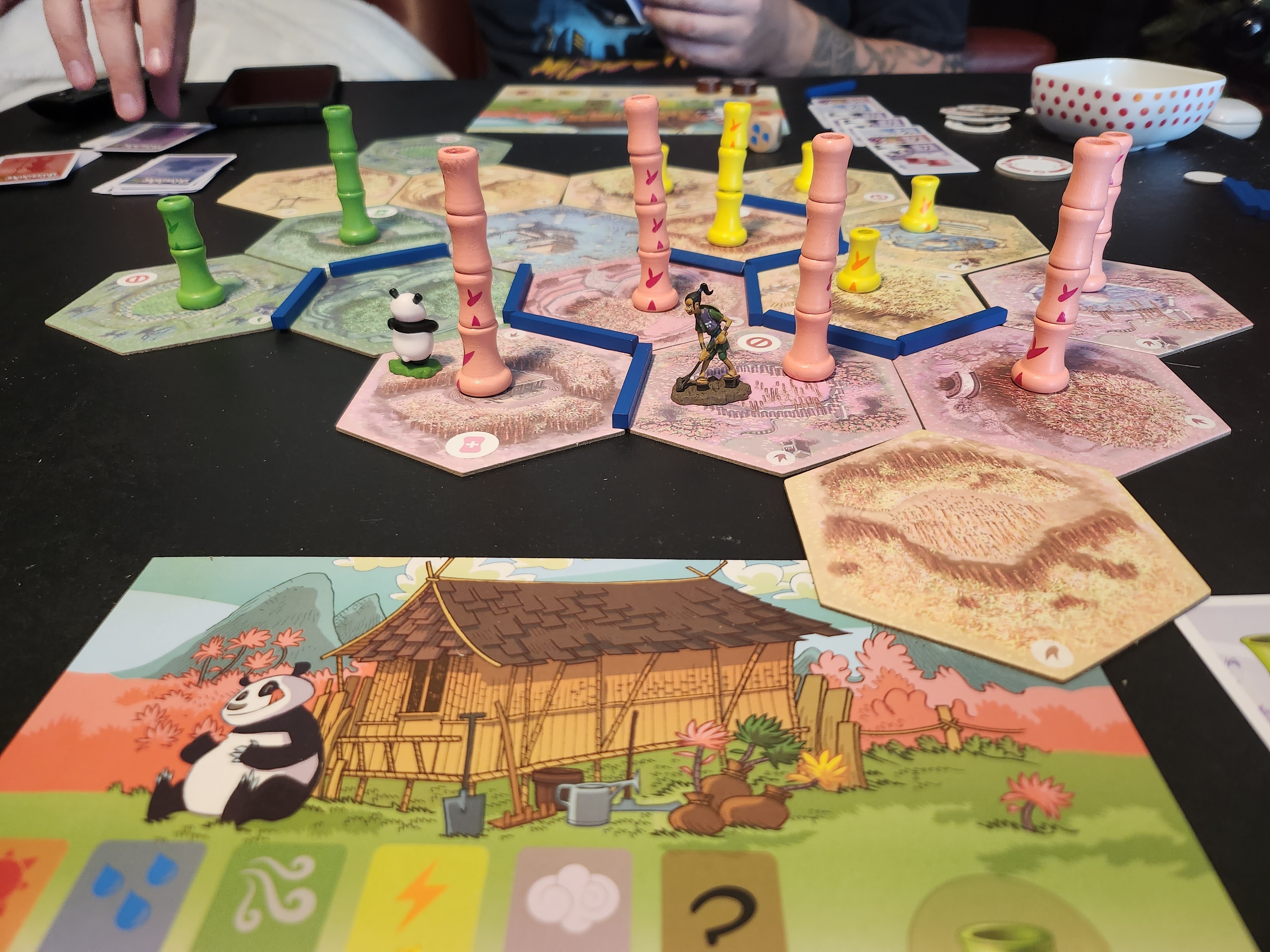 I adore this game. I enjoyed feeding the panda while growing enough bamboo to reach my objectives. The components are well made. The player’s mat is well-designed and helps the player keep track of their individual turns. Another bonus is the after-market components you can purchase off of Etsy. I picked up some card sleeves to protect the game cards. You can also purchase individual containers that fit in your box to hold the bamboo pieces and the irrigation pieces. They also have a cute card holder you can purchase.
