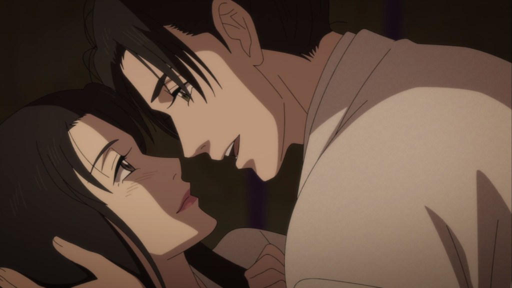 This was a bittersweet episode. However, I am curious whether they’re going to address how Chie/Iemitsu’s baby died. Since it was a girl, did Kasuga have it murdered? I wouldn’t put it passed her. She is, after all, the master schemer. This baby was unexpected and the result of a rape and, therefore, not part of Kasuga’s plan. This episode reinforced Arikoto’s character as a man willing to save others at any length. Seeing the pain that living as a man was causing Chie/Iemitsu, he committed himself to love her. His love is ebbing away at her harsh exterior. However, they have not produced a child. Is the man she loves unable to produce children? Kasuga is growing impatient, so I am curious to find out what scheme she has planned.