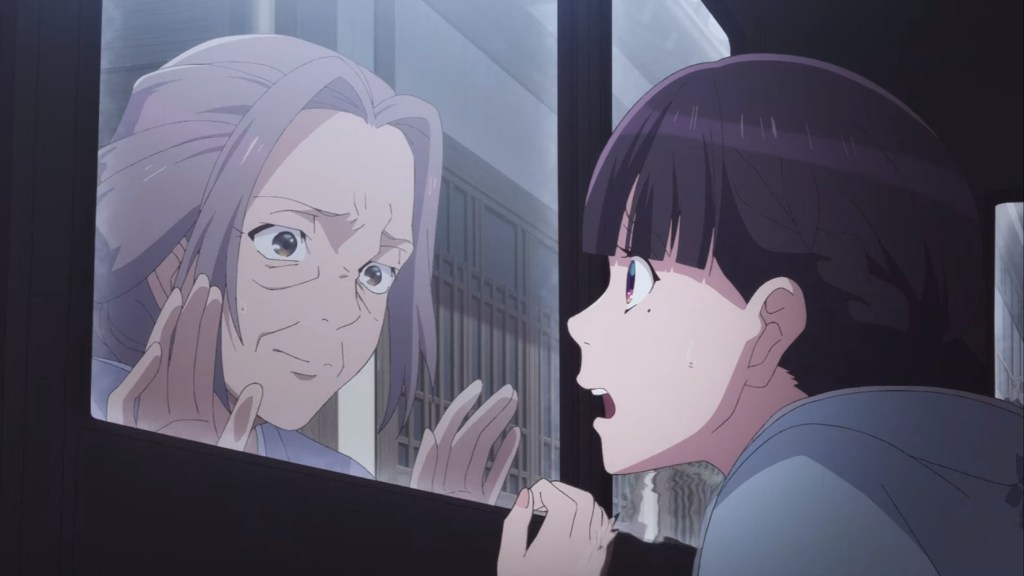 Later that evening, Miyo has another nightmare. This time, she is pushed by spirits into the memory of her being locked in the shed when she was little. Lord Kudo finds Miyo and tries to comfort her. He senses the traces of supernatural ability, but the barriers around his home have not been triggered.