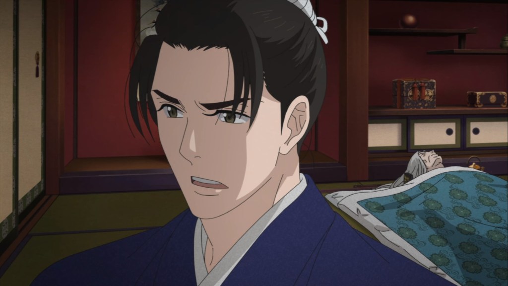 Lady Kasuga has become bedridden. Kasuga is given an attendant, but she is also Chiyo’s wet nurse. Arikoto takes it upon himself to tend to Kasuga. Iemitsu is upset that Kasuga won’t take any medication to aid her illness.