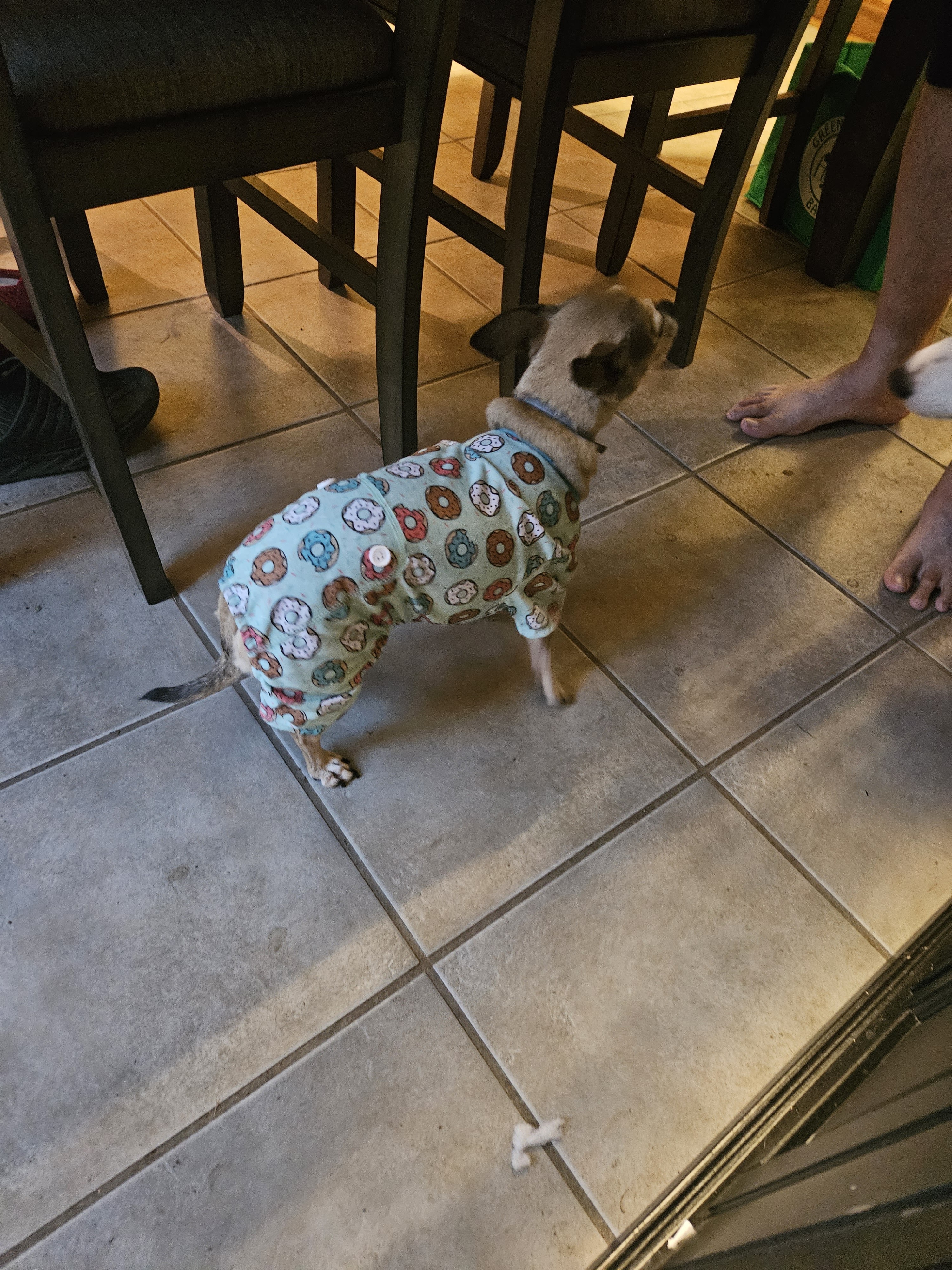 Muffin is our little old lady. We got her pajamas for the winter.
