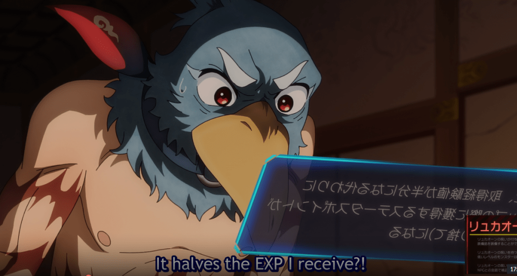 Back in-game, Sunraku has a conversation with Vysache, the yakuza-style boss of Rabituza. Vysache praises Sunraku for his powerful vorpal soul. Vysache offers to train Sunraku up to snuff. Sunraku realizes it is a training quest and he has no reason to refuse. Vysache puts Sunraku in Emul’s care. As Vysache is walking off, he remembers the collar in his hand. He throws it toward Sunraku. It is a vorpal soul collar that halves the experience received.