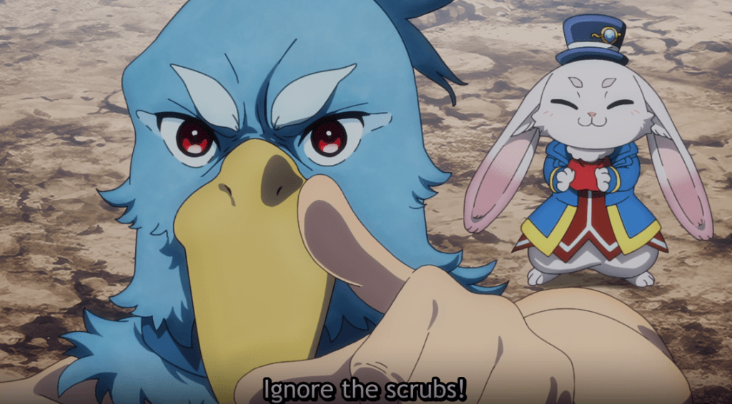 Last episode, Sunraku verified that his Lycagon curse causes lower-level creatures to flee. He tests out this part of the curse and even comes up with a plan to corner lower-level creatures to kill them. However, upon confirmation, Sunraku decides to, “Ignore the scrubs. Straight to the area boss!”