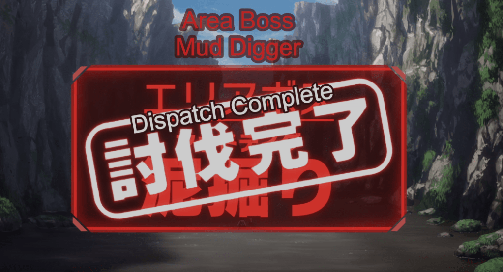 In the last episode, we caught a glimpse of the area boss, The Mud Digger. Immediately, Sunraku is at a complete disadvantage. The movement penalty refrains Sunraku from his normal attack patterns. As the Mud Digger heads straight for them, Sunraku uses a sliding move to get out of the way. Fighting Lycagon allowed many of Sunraku’s skills to improve.