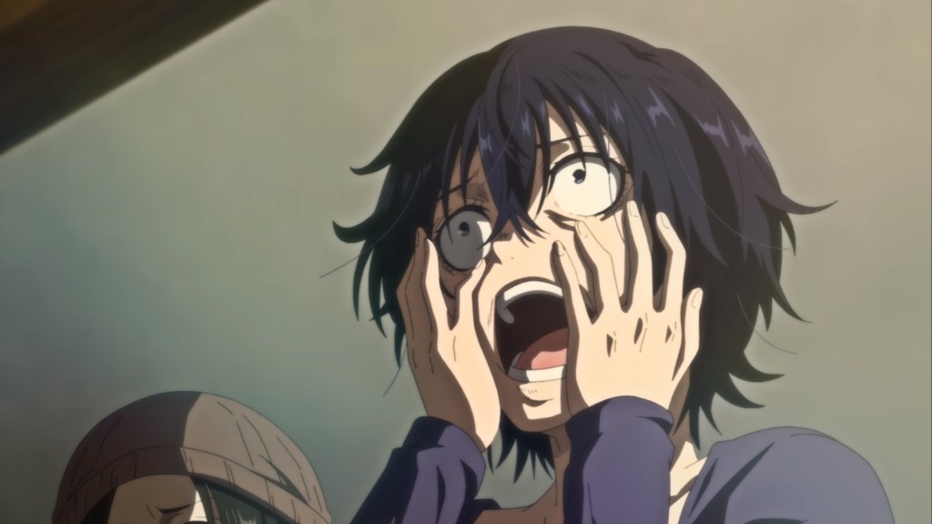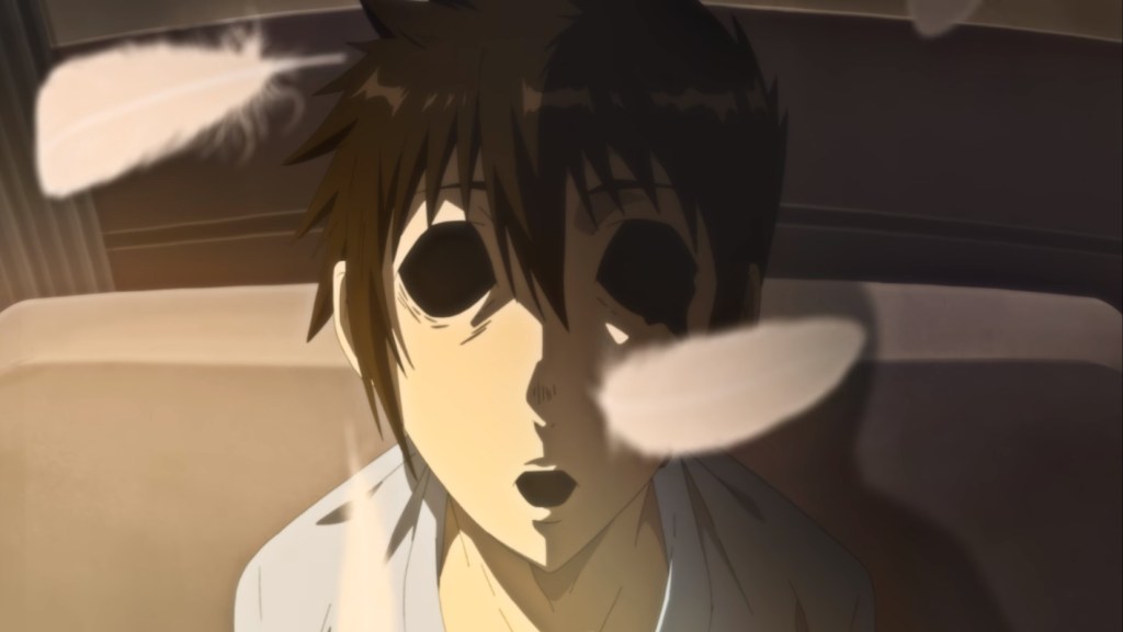 Kojiro is still recovering from his session to kill Pico. He explains to his assistant that the Black Bird is the worst AI he created and that it will infect people’s minds. Shigatera, in real life, gets a notification on his phone telling him a durability test will begin. He gets hit by a truck. The Black Bird surrounds Shigatera’s dead body and says it is too weak. Shigatera screams. Was it a dream? Then, he receives a second message that the next durability test will begin. In the corner of his room, a fire starts. He burns to death. Again, he wakes up. The Black Bird is putting him through numerous “durability” tests.