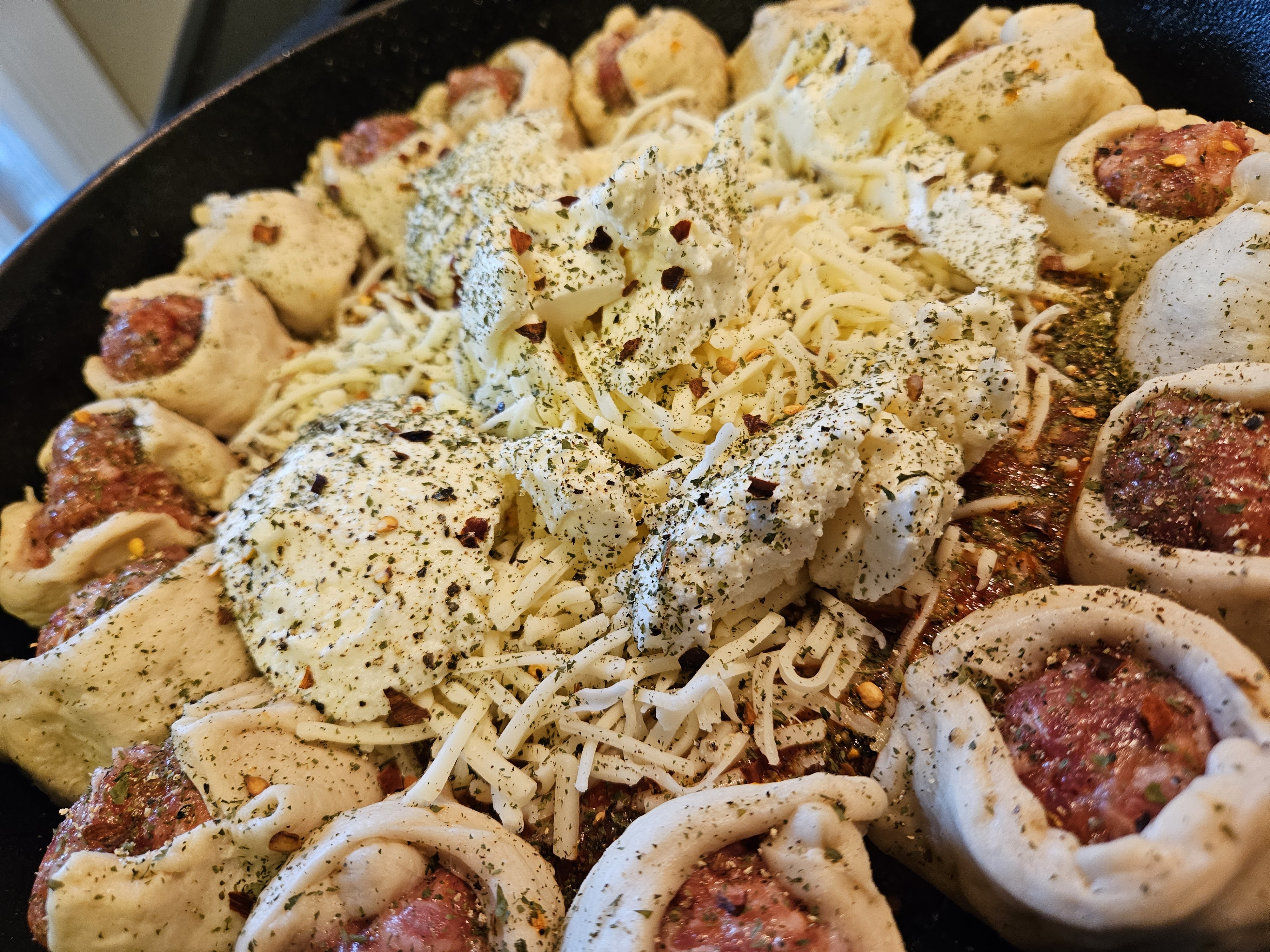Do you like Italian sausage? What about marinara? Parmesan, mozzarella, and garlic butter? Then you might like what I whipped up for our lazy New Year’s Day dinner.