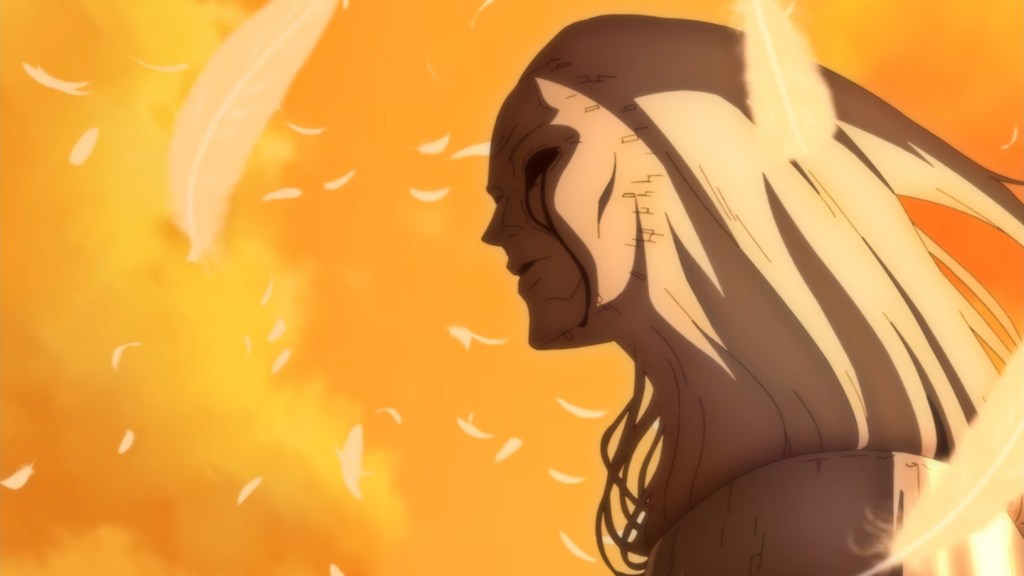 Meanwhile, Ichi tells Leon that they’re going to bring Kojiro back from the afterlife to fight him. He breaks through the barrier and starts to drag Kojiro out.