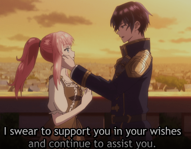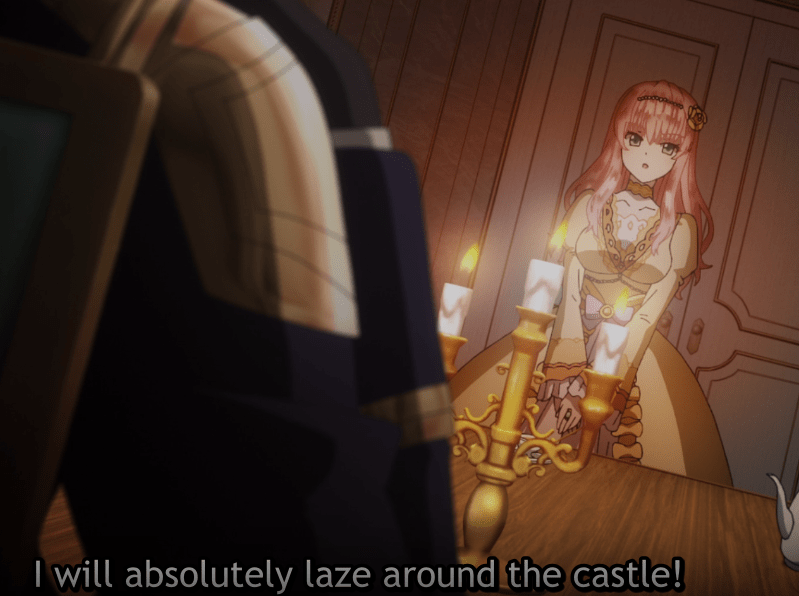 Prince Arnold bows before Rishe and thanks her for saving his men. Rishe is beyond confused. The murderous man that killed her isn’t quite the same person that is before her. Her curiosity is piqued. Then, she finds out/realizes that she is really a hostage. This excites her and she thanks the Prince. She is excited that she will finally live a lazy life.