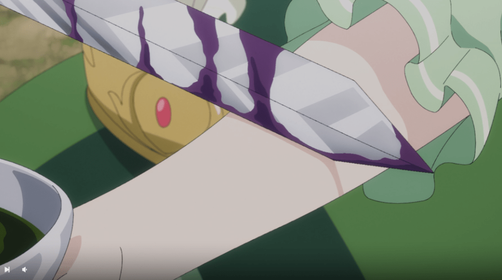 They make their way back to Prince Arnold’s home country. Rishe somehow ends up with Prince Arnold’s sword and uses it as a pillow to sleep. When he tries to reach for it, she draws the sword reminding him he promised not to touch her. He then points out that she took his sword. Prince Arnold is surprised at her ability to sense things. Just when she realizes how handsome he is, they get attacked. He locks her in the carriage and tells her to behave. However, she has other plans. She lockpicks her way out of the carriage to find that Prince Arnold quickly dispatched the attackers leaving them wounded, but alive. Many of his soldiers were wounded. Using her knowledge of herbs in her past life, she mixes a concoction to counteract the effects of the poison used on them. None of the guards seem keen to take her antidote. She slices her own arm with the poison and leaves it up to them to decide whether they want to be healed or not.