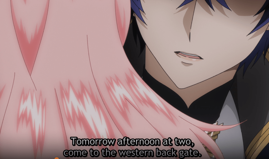 As they look at the sunset, Rishe deduces that they’re waiting for someone. Prince Arnold agrees and tells Rishe that someone sent a letter that they would not be able to attend the wedding but would arrive in advance. Prince Arnold deduced that they would arrive at that moment. As predicted, Prince Kyle from Coyolles arrived.