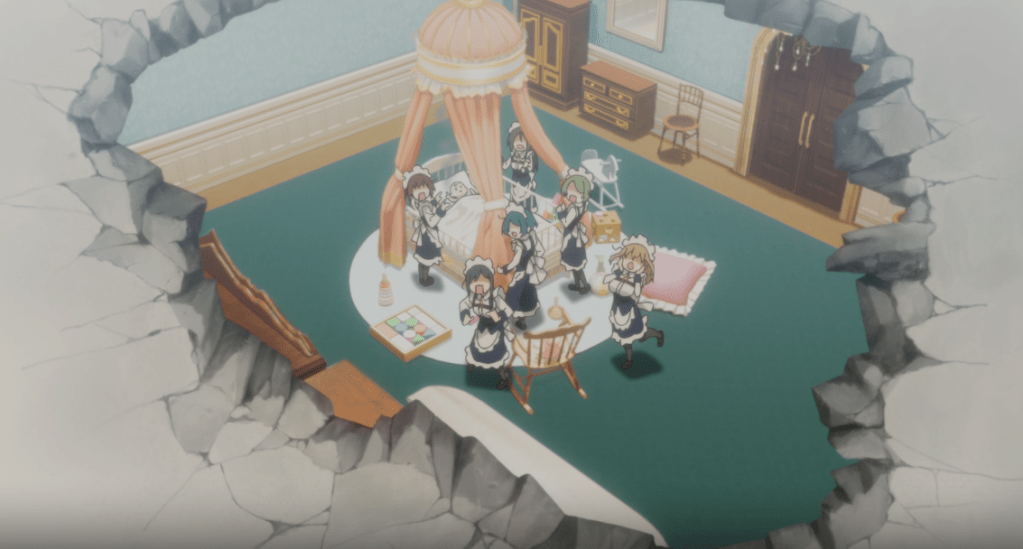 Prince Lloyd is subjected to bathe with all of the maids. As he protests, they tell him the story of the castle’s forbidden library and a demon that is sealed away in a book. Instead of scaring the young prince, he decides he is going to go on an adventure to find the forbidden library.