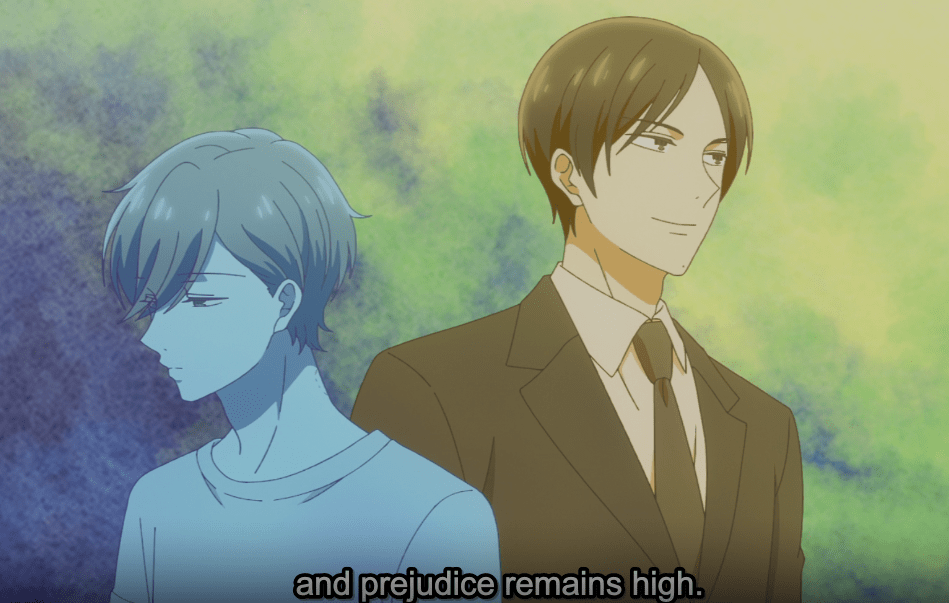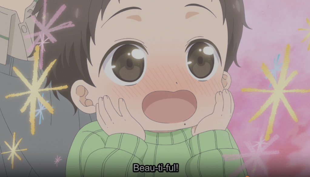 I adore this show! Hikari is so adorable. That being said, things must be drastically different in the omegaverse. Hikari is about to turn two, but has the vocabulary and comprehension of a child much older. I am looking forward to watching how the show navigates prejudice. In this show, the prejudice stems for the alpha/omega/beta status. Typically, they don’t mate outside of their secondary gender. To do so is almost taboo. The same could be said about same-sex couples in the real world. So, I am particularly interested on how this show navigates the prejudice that comes with not following social norms.