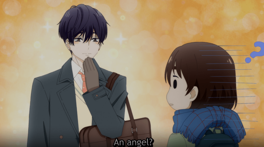 Hotaru is running out of the train station and waiting for her is the very handsome Hananoi. It’s their first day as a couple. While staring at her, Hananoi accidentally lets his thought slip and he calls her an angel.