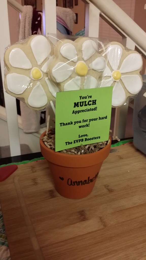 Below are a few things I did to help the high school band community. I baked. A lot. Brownies for the jazz band fundraisers. Cookies for the students when they helped the band boosters out. Cakes for auction at the annual percussion fundraisers. Then, there were the parent’s night marching event where we prepared hundreds of hot dogs for the band kids and their families. One year, we had an ice cream social. Every summer, I cut dozens of watermelons into cubes for Watermelon Wednesdays during band camp. One year, another parent helped the boosters grill burgers. We hosted All-Region Band auditions where I prepared the judge’s hospitality room. I literally made everything from pinwheels, to Swedish meatballs, to queso. I attended every band event. Every marching contest, every percussion competition, every concert. I lead every month’s booster meeting, I oversaw the annual mulch fundraiser, I even ran colorguard contests with hundreds of participants. I also oversaw the planning for the yearly band banquets. Every Friday, I recorded the marching show for the band directors. I sent weekly e-mails with the upcoming band events. I sewed/repaired band uniforms. I helped on picture day. I am sure there is more that I did, but if it was a chance to help, I did.