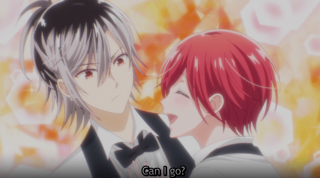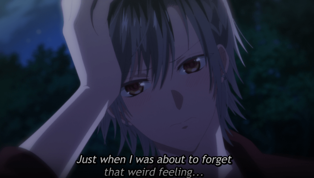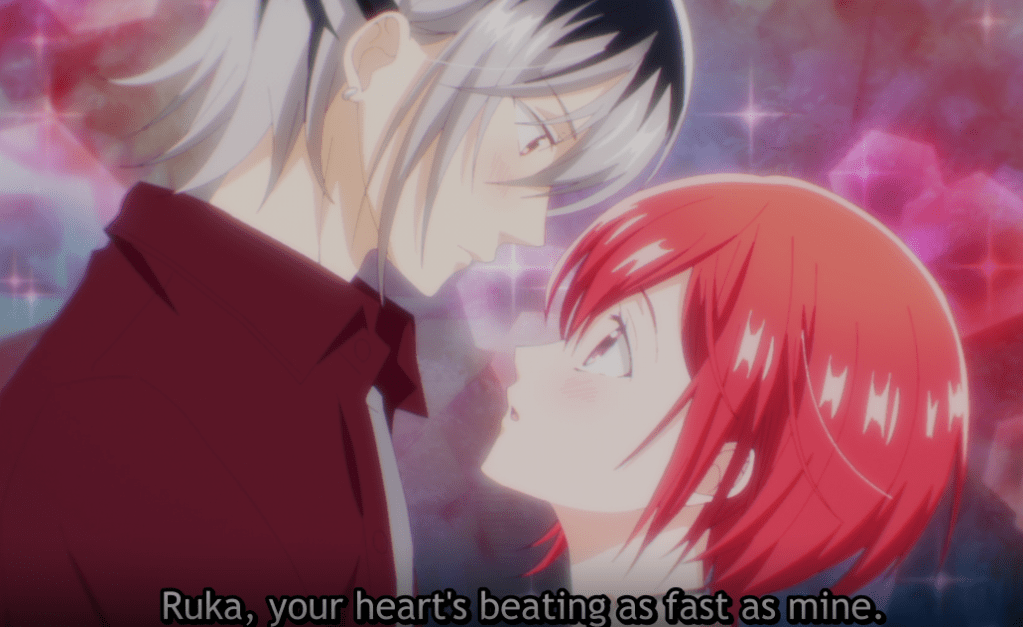 Ruka tells Mito that he’ll go. While the others talk about details, Ruka’s heart is beating fast. Scaring him, Komori pops up and asks him what’s wrong. Ruka admits something is wrong with his heart. Komori teases him saying vampires don’t become sick. Ruka wonders what that feeling could be.