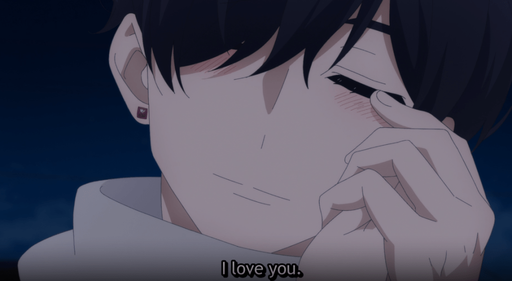 Feeling down, she lays down to go to sleep. Suddenly, her phone starts to ring. Hananoi is out of breath. He had run to her house. Hotaru tells her mom she’s going to the konbini. Upon seeing Hananoi, she runs into his arms.