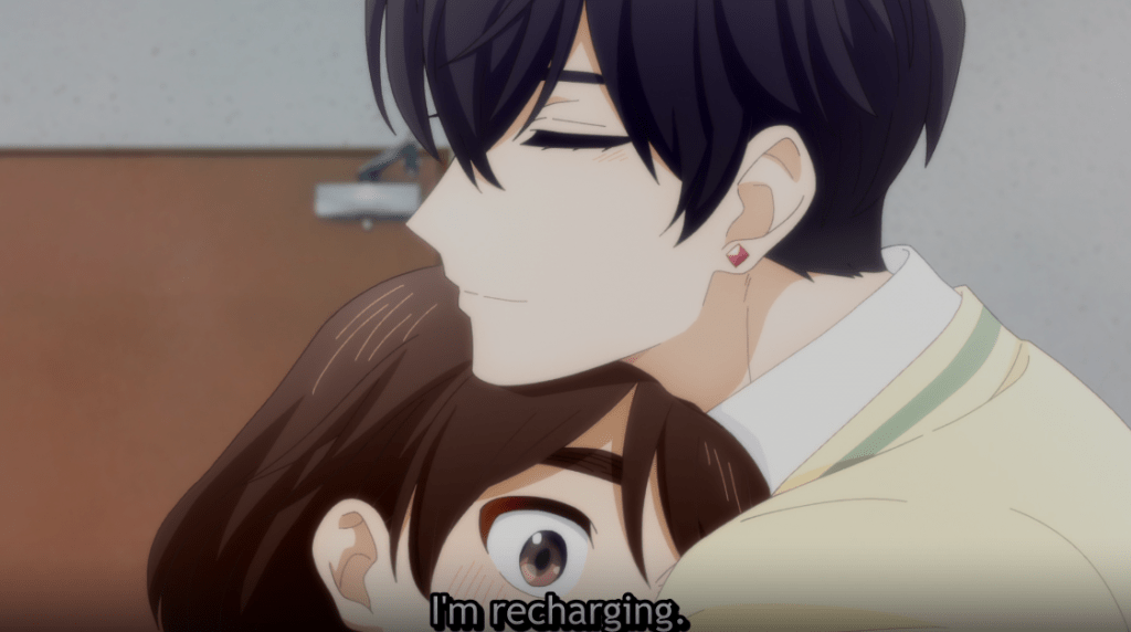 The next day, lunch rolls around. Shibamu is left alone for lunch. Hotaru, of course, wants Shibamu to eat lunch with her and Hananoi. She doesn’t know who to choose, but out of nowhere, Hananoi offers to eat lunch together. Surprised, Hotaru pulls Hananoi aside and tells him it won’t be just for that day. Hananoi proudly announces that he has decided he can live with that. Hotaru is still worried that Hananoi didn’t enjoy lunch. As he hugs her, he admits the past him wouldn’t, but the new him didn’t mind at all.