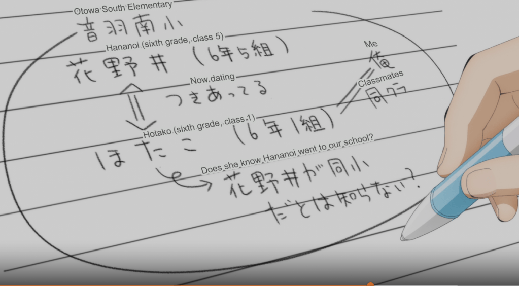 Yao is having a flashback recalling how he met Hotaru. He remembers her being sweet and kind. More than anything, he wanted her to be happy. However, writing on a piece of paper, we learn that Hananoi is possibly keeping a secret. Did Hotaru remember that they went to the same elementary school?
