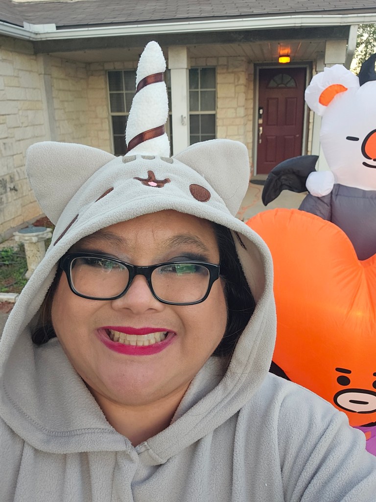 Wow, that’s a lot of onesies! Very cute! This question is actually a really easy one for me, once I find an outfit I like, I tend to buy a whole bunch of it and wear it like a uniform. So, if I had to wear one outfit forever it would probably be the same thing I wear almost everyday, black cotton capri pants with an over sized anime T shirt that I wear like a mini dress.
