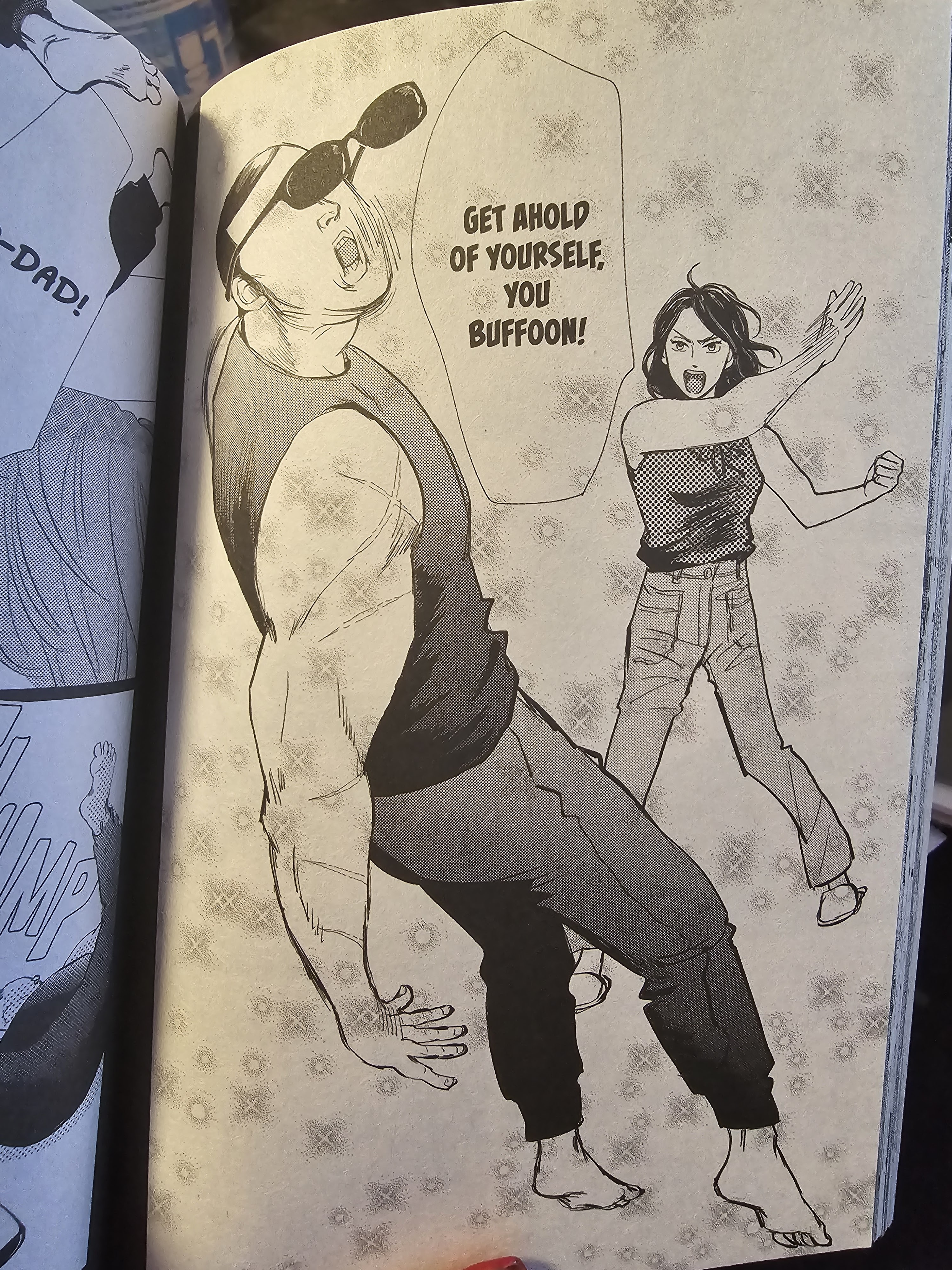 Chapter 28. Ida and Aoki cancel their plans to go to the festival because of predicted rain. However, Aida and Hashimoto go and get caught in the rain. While waiting for the bus, Hashimoto cries because she really wanted to do something for Aida for studying with her. The bus is running late. Hashimoto gets a call from her dad and tells her he’s picking them up. Aida is not ready to meet her parents, however dad shows up and looks buff to boot. Aida is convinced he is going to die at the hands of Hashimoto’s dad. At Hashimoto’s house, dad is putting on the tough act. Hashimoto’s mom lends him some dry clothes to wear. They invite him to eat dinner. Aida compliments the mom but is quickly put in his place when dad is actually the one cooking. Hashimoto’s dad continues to lay on the act thick. Hashimoto’s mom smacks the crap out of dad for intimidating Aida and Aida comes to the realization that Hashimoto’s dad is a former pro wrestler that he used to love watching.