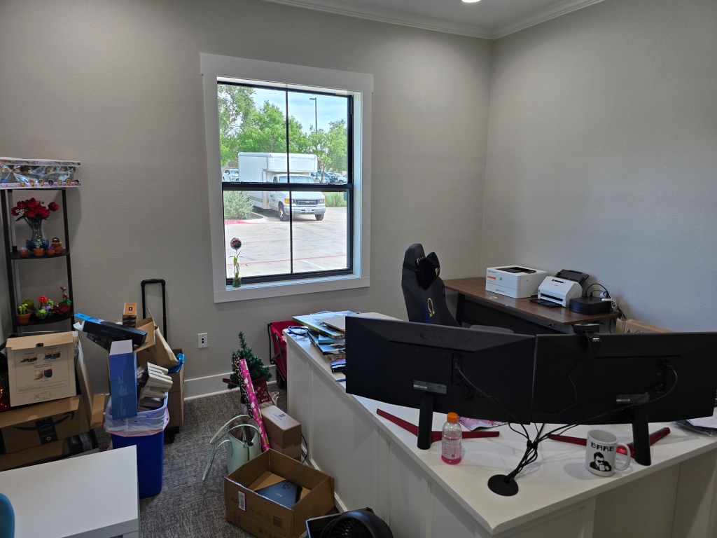 The office move started today. On the left corner is my Lego plant collection on display. My monitors will be stacked vertically. I am temporarily using a conference room table to house my scanner and printer. Eventually, there will be a matching credenza there. It’s coming along. Slowly. It’s a wreck at the moment.