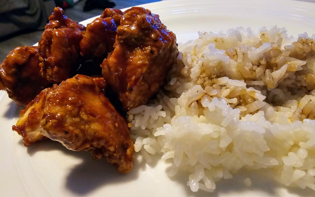 What did you have for dinner tonight? I cooked gochujang popcorn chicken with rice. I put a splash of soy sauce on my rice. Tonight’s batch was spicier than normal, but was so delicious. Want the recipe? Check out this post: All Things Food: Gochujang Popcorn Chicken