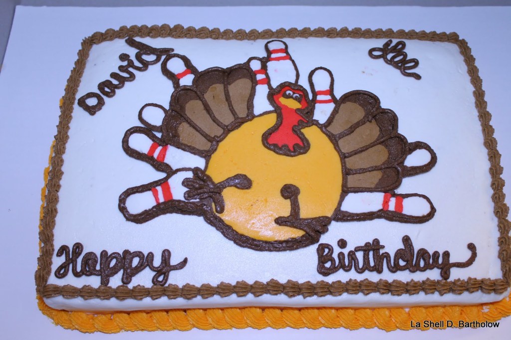 Another fail that I can think of that is actually mine is a decorated cake. I tried to make a buttercream transfer and it came out horribly. His birthday is around Thanksgiving and he was in a bowling league, so I put together a turkey cake. I felt so bad for my nephew.