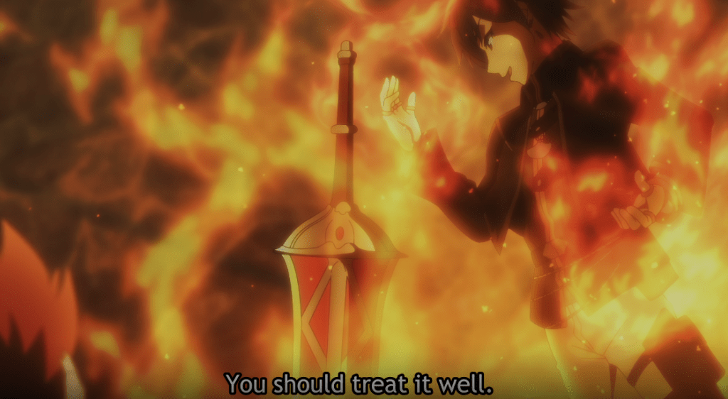 Tino and Krai approach Greg, Gilbert, and Rhuda. They still can’t believe Krai is Thousand Tricks and leader of the greatest party and clan. Krai invites them to group with Tino to take on the “chore” that was assigned to Krai. Gilbert can’t accept who Krai is. So, Krai decides to give up on Gilbert and solicit the other two. As Krai is walking away, Gilbert challenges him. Krai tells Gilbert the fight won’t be with Krai, but with the party leader, Tino. Tino absolutely demolishes Gilbert. Krai points out to Gilbert that Gilbert left his party due to the skill gap. Gilbert is surprised Krai knows that. Krai kicks the Purgatorial Sword and the fire engulfs Krai. Gilbert is in shock that his sword produced more flame for Krai than he has ever been able to manage.