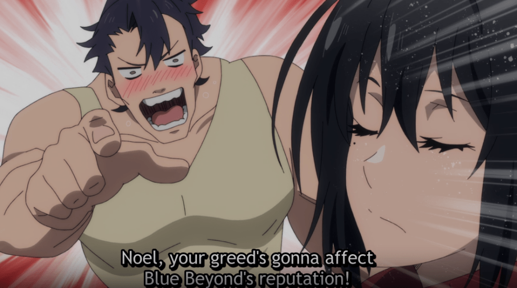 Blue Beyond return to Etrai, the imperial capital. There, they celebrate their win. We meet Walter, the warrior. Tanya, the healer. Lloyd, the swordsmen. It is apparent that Walter and Noel don’t necessarily get along. Walter pokes at Noel for being greedy. Noel remembers the words from his grandfather that he needs to be particular about the money so he can go out with the best equipment and weapons.