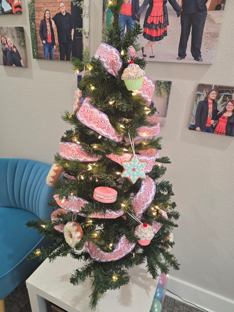 Yes. It’s only mid-November. I already have my house Christmas tree up. Now, I have my work Christmas tree up. It’s not finished. I have an army of Hello Kitty ornaments on their way to adorn all of the empty spots. When I am 100% finished, expect to see an update. I also ordered a cute pink tree skirt to go around it. I am blessed that I can afford to spend money on such a non-essential thing.