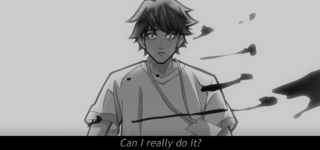 The episode begins with a montage of a hero fighting with a villain. In the background, the voice of a hopeful young man narrating. Lin Ling, our narrator, is interrupted by his boss who immediately begins to chastise him. We learn that Lin Ling is pitching a commercial to his boss, however his boss isn’t feeling the vibe. He commands Lin Ling to start over, but gets interrupted by the phone. It’s the client. Lin Ling already sent the proposal over. His boss immediately fires him.