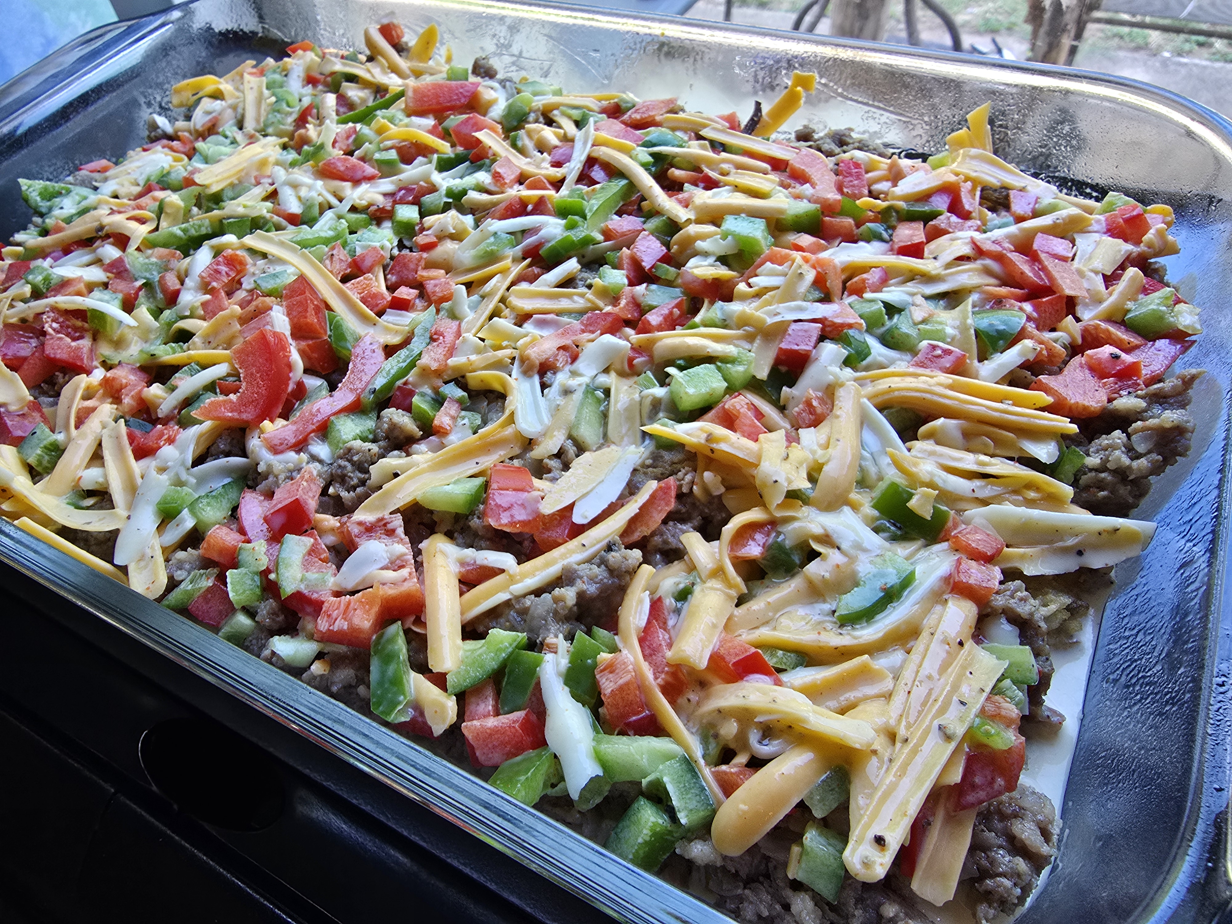 We absolutely loved it. It wasn’t dry! There is so much cheese, it keeps the casserole moist. In addition, the casserole didn’t taste like overcooked eggs. You could tell the eggs are there, but the taste of the bell peppers and onions really come through. If you don’t like bell peppers and onions, you might want to skip this recipe. We will definitely keep this recipe for future meals.