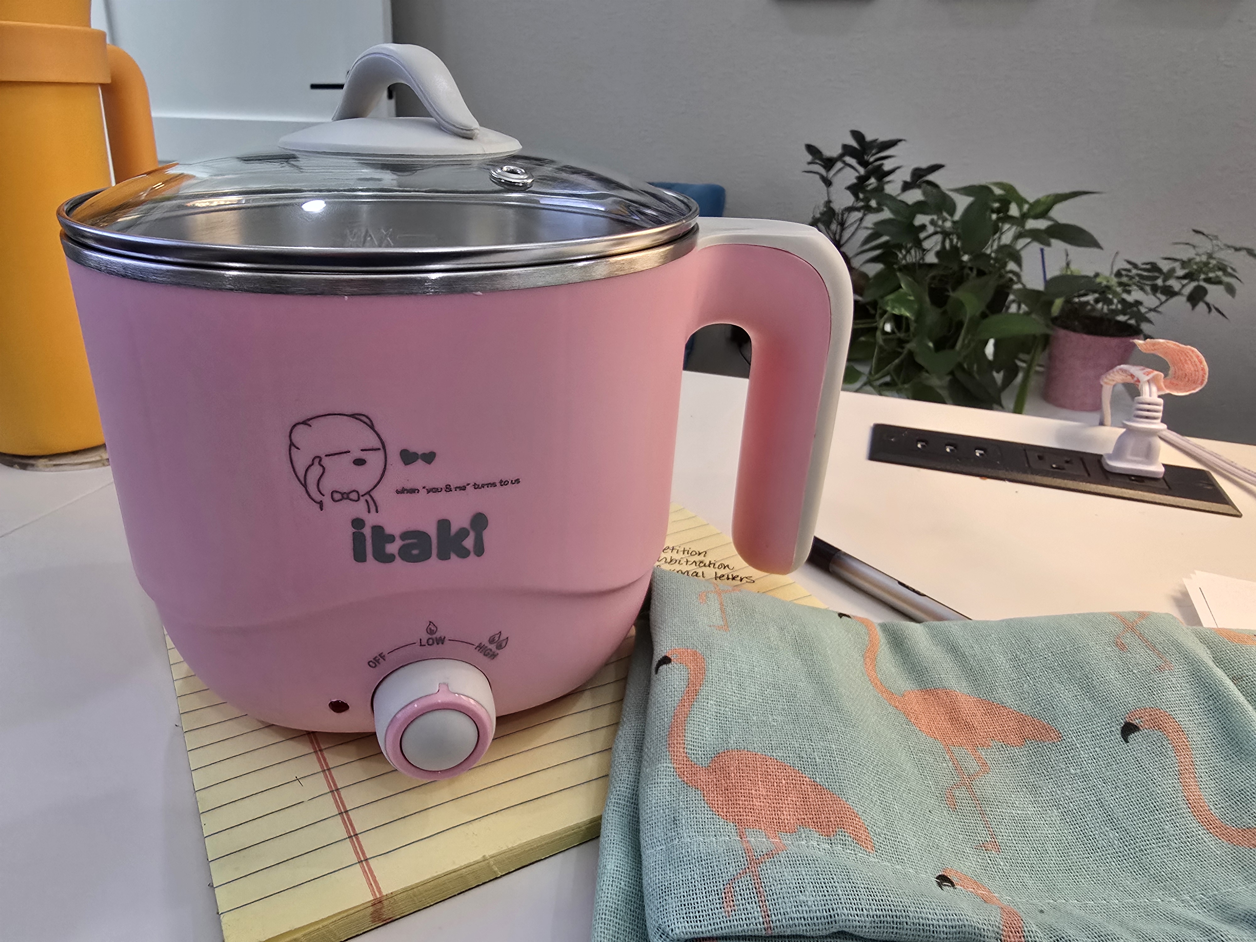 I got this new shibuki cooking pot. It’s super cool. It’s an electric pot that you can cook your lunch in.