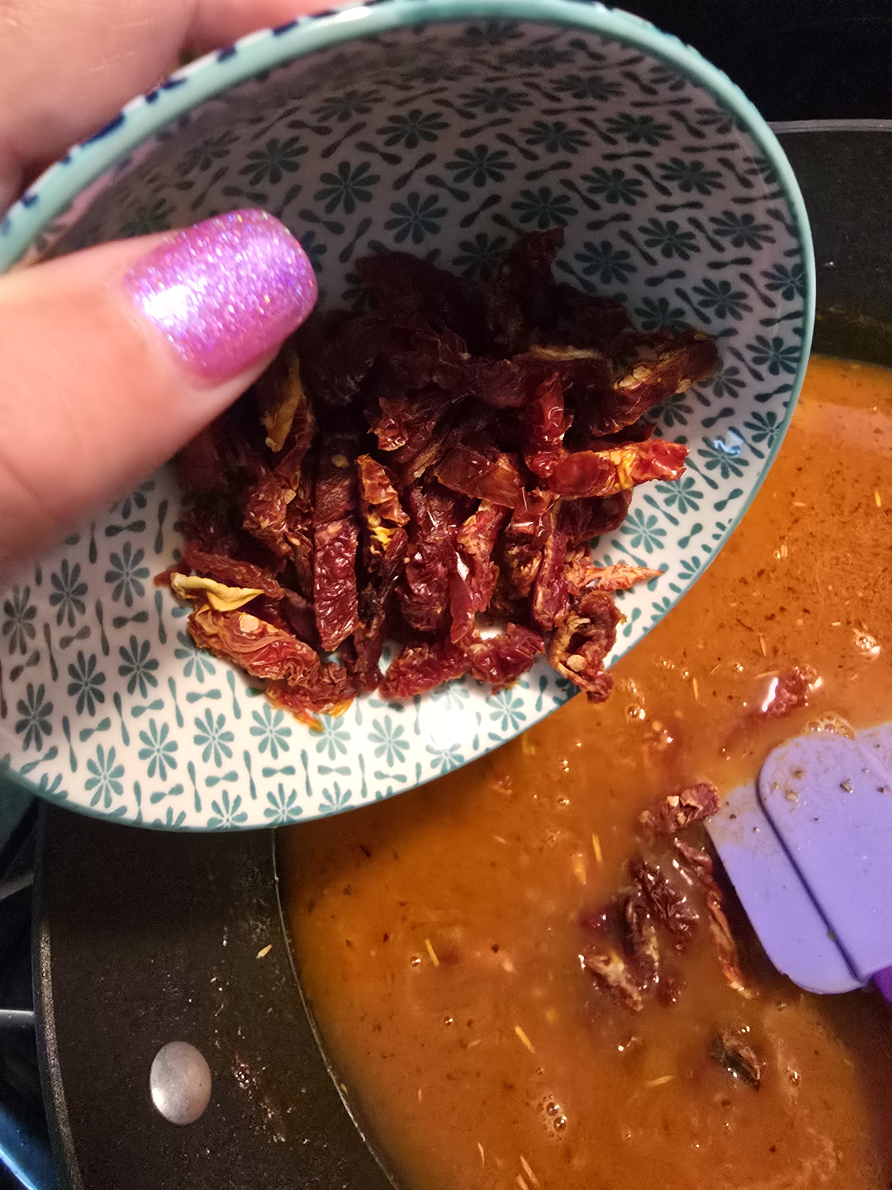 - 2/3 cup dry-packed sun-dried tomatoes, sliced