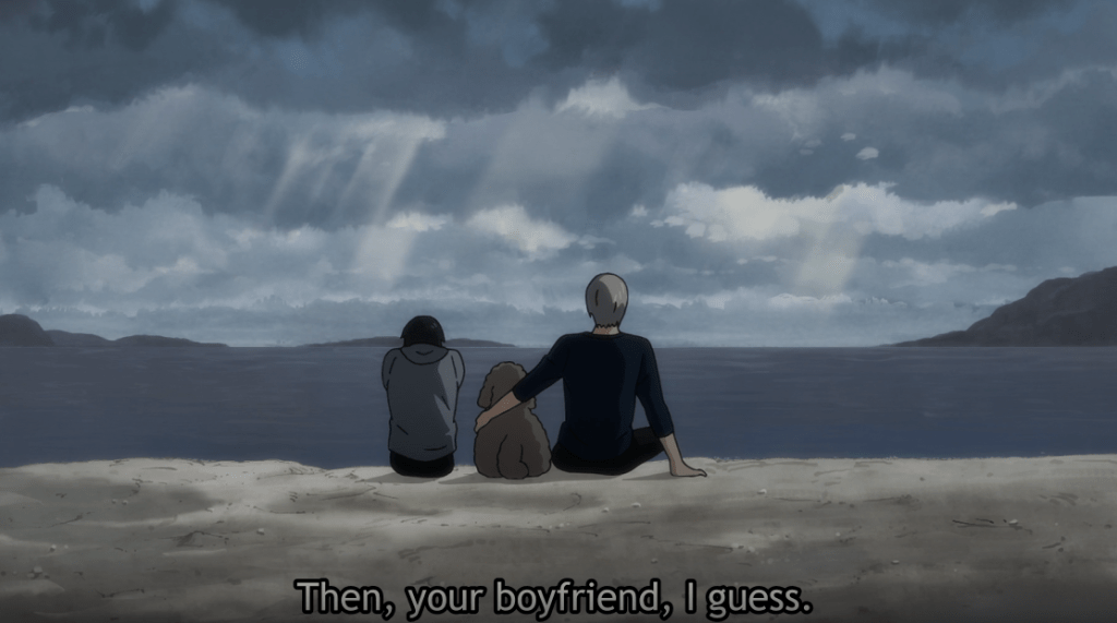 At the beach, Yuri opens up to Victor and tells him a little bit more about his past. Victor asks what Yuri wants Victor to be to him. A father figure? A friend? When Yuri keeps saying no, Victor goes all out.