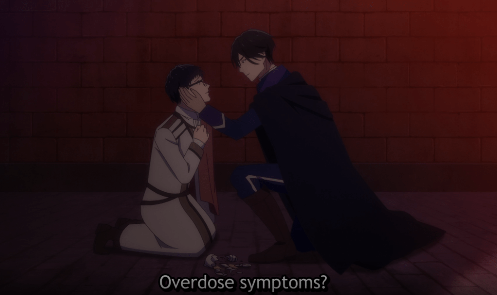 He immediately tries to heal Kondou with magic. However, Kondou gets worse. Instead of overdoes symptoms, he now has magic sickness symptoms. Indolark deduces it must be because he’s an otherworlder. Wrapping Kondou in his arms, he takes him to a room. When Kondou awakes, Indolark is looking down at him. Indolark explains the dire situation.