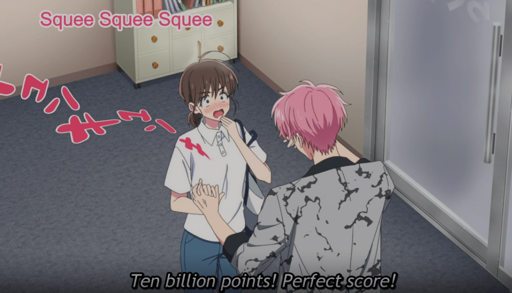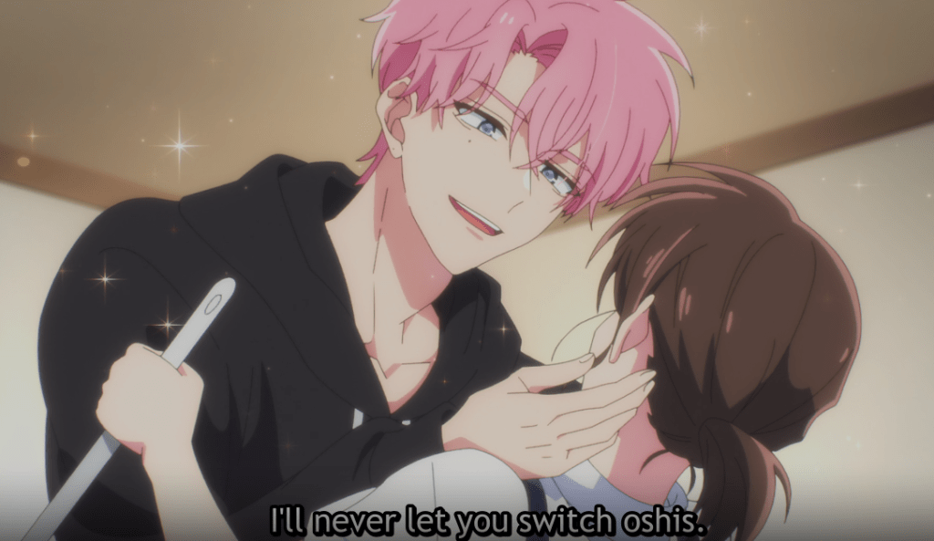 Episode 1 Recap: We meet pink-haired idol God Tamon-kun of the idol group F/ACE and his #1 fan, Kinoshita. In order to fund her addiction to Tamon, Kinoshita works a part-time job as a housekeeper. When a co-worker falls ill, Kinoshita is tasked with Tamon’s cleaning. However, when she arrives, she finds an anxiety-ridden man who is far from the idol she worships.