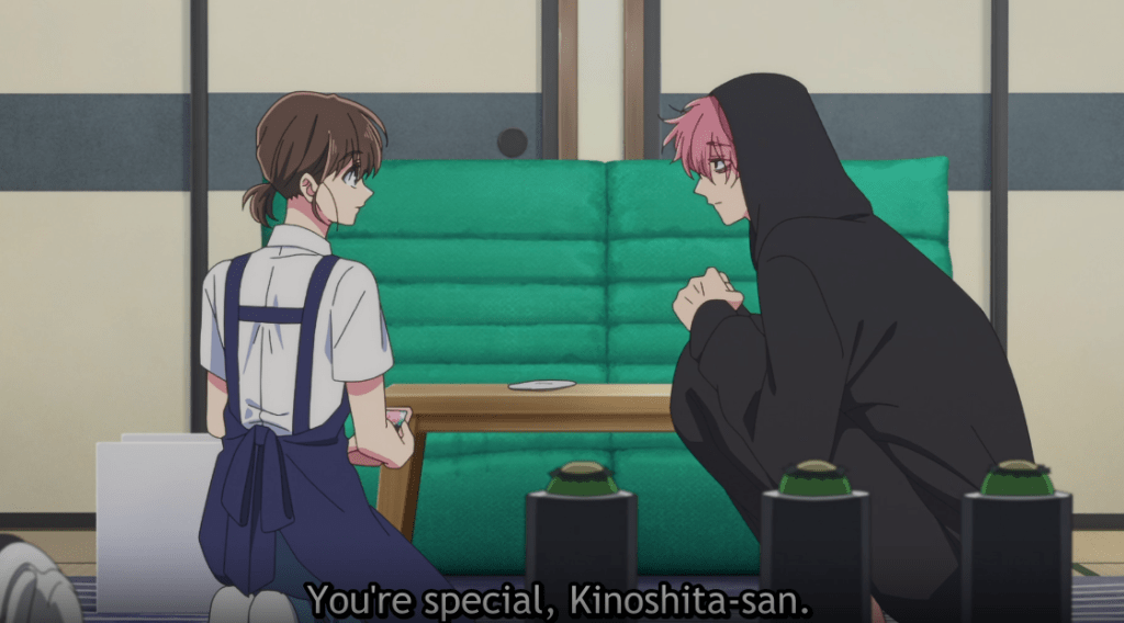 Tamon asks for her help, but she immediately declines because she can’t imagine herself taking up his time. However, Tamon thinks he is a walking trash bag for assuming he could take up her time. Kinoshita decides to help him, but she is out of her league. Tamon is just too sexy.