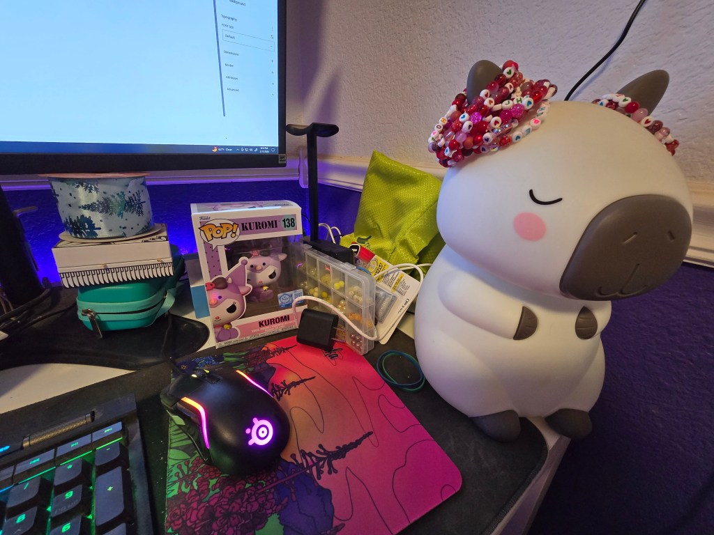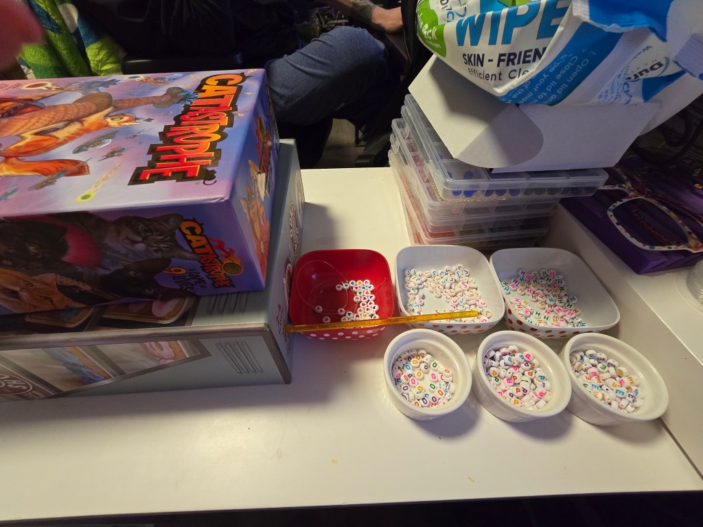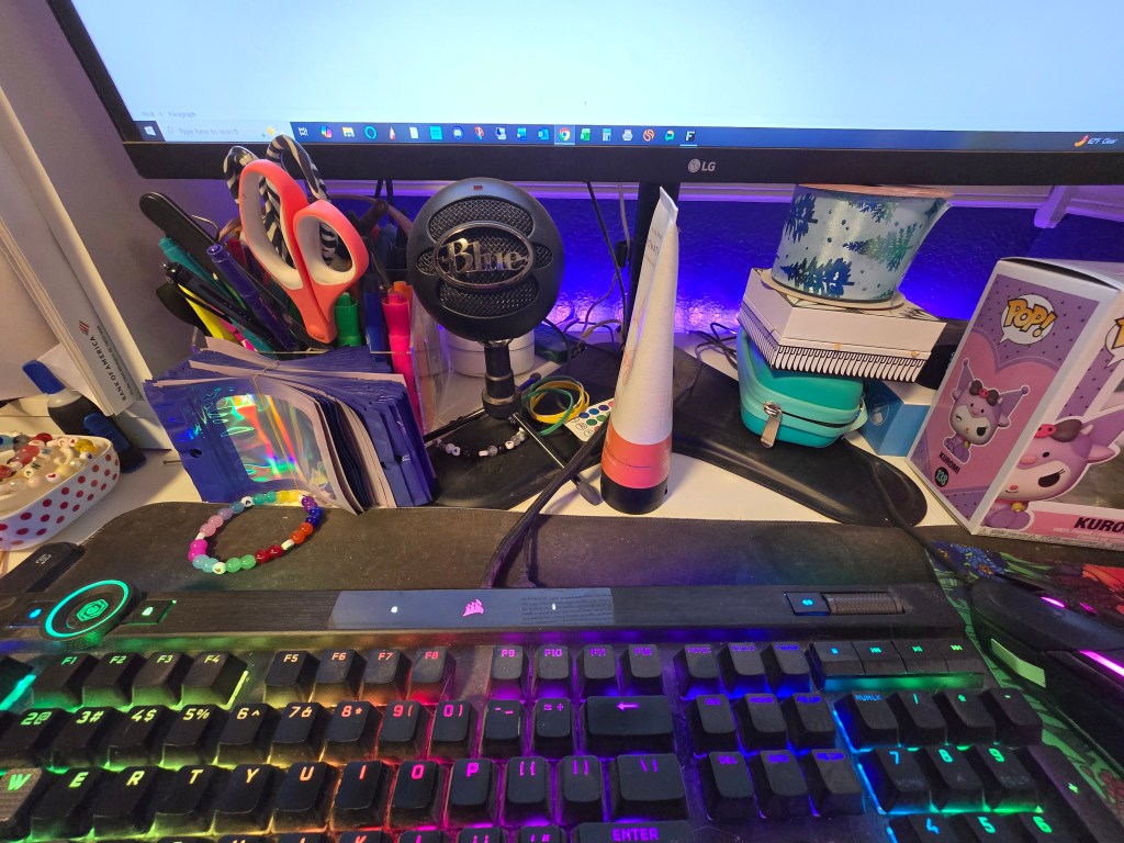 In order to get to where it is where my perfection wants it to be, I do a little bit at a time. I have to take the small wins where I can. Currently, I am making bracelets for the BTS concert, so the desk will just have to look like crap until I finish. Only 75 more to go…